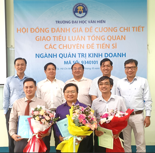 On October 5, 2025, Van Hien University successfully convened the Council for the Evaluation of Detailed Dissertation Proposals and the Assignment of Overview and Specialized Essays for three PhD candidates — Le Hong Danh, Bui Mai Hoang Lam, and Vu Thanh Tung — from the 2023 and 2024 cohorts of the Business Administration doctoral program.